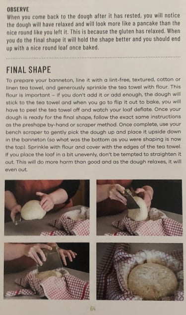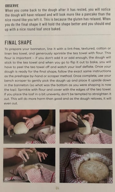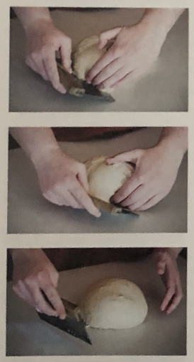 Dump the dough onto a clean surface. Tuck the dough under itself (4-8 times) until the surface is tight and round. The pictures use a bench scraper tool but it isn’t necessary. Rest for 10-20 minutes.